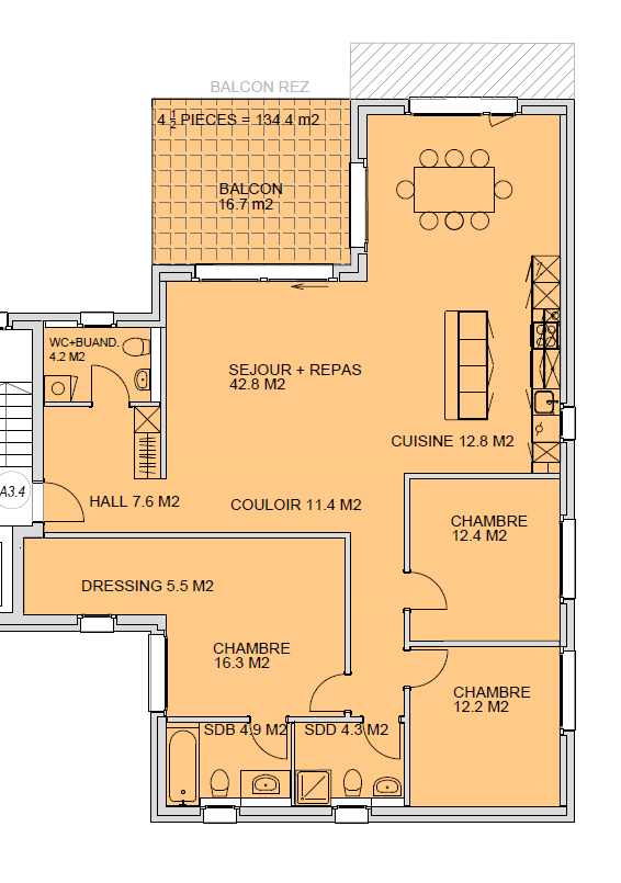 | Surfaces | Env. 134.4m2 |