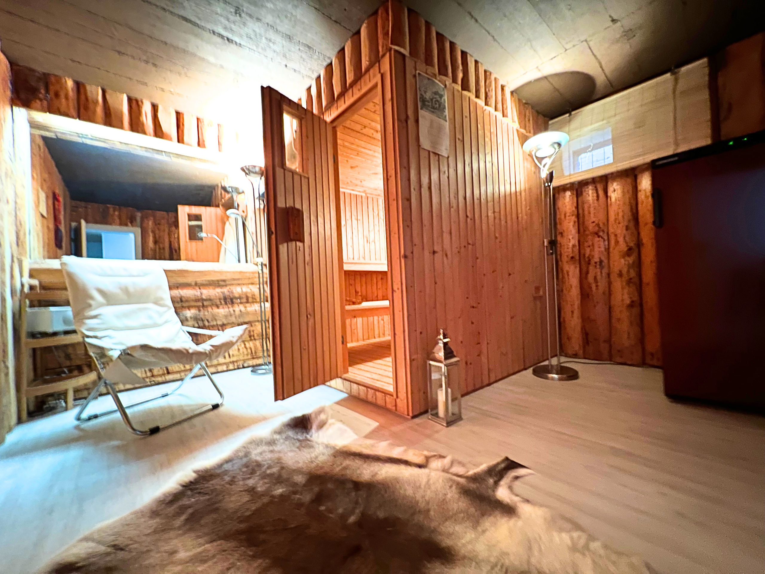 Sauna intérieur aménagé et coin détente au sous-sol